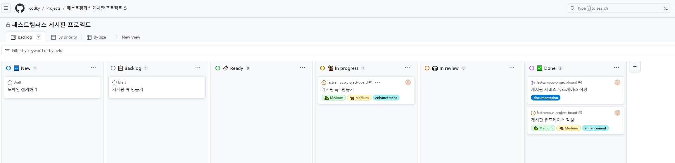 깃허브 backlog 에 이슈 관리
